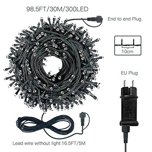 【Luci natalizie】: dotato di 300 perline a LED bianco caldo con una lunghezza totale di 98 piedi (30 metri), renderà la tua casa più luminosa, non solo adatta per il Natale, ma anche molto adatta per qualsiasi festa all'aperto o fornirà una decorazione ideale per feste ed eventi.