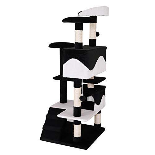 Lionto Tiragraffi per Gatto Albero Tiragraffi Gatto Gioco Giocattolo Gatti Altezza 130 cm, Nero/Bianco