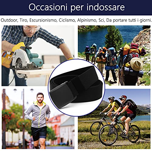 LionVII Cinture Elastiche da Uomo in Nylon Tessuto con Fibbia in Plastica 130cm (Nero)