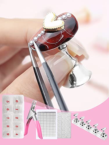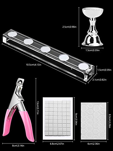 Set di Grande Valore: Il set di supporti per unghie include 1 set di 5 espositori per unghie, 54 pezzi di argilla adesiva riutilizzabile, 500 pezzi di punte per unghie finte, 10 fogli di colla gelatinosa a doppio lato e 1 tagliaunghie per soddisfare le vostre esigenze di manicure e nail art.