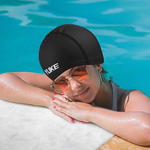 LIOOBO Cuffia da Piscina Nera Cuffia da Piscina Cuffia per Donna Uomo Cuffia da Nuoto Impermeabile Antiscivolo Proteggere Orecchie Capelli Lunghi per Adulti Ragazzi E Ragazze