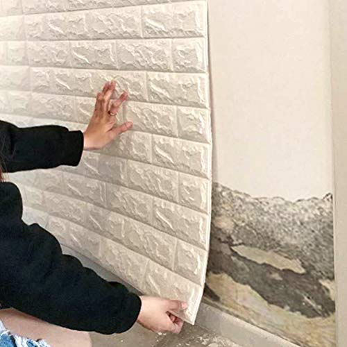 LIOOBO Muro di Piastrelle autoadesive Buccia e Bastone 3D Mattoni Bianchi Carta da Parati per Soggiorno Camera da Letto Sfondo Decorazione della Parete