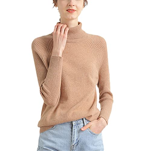 LIOPJH Lana Cashmere Maglione Donna Dolcevita Maniche Lunghe Autunno Inverno Pullover Maglia Maglione, cachi, XXL