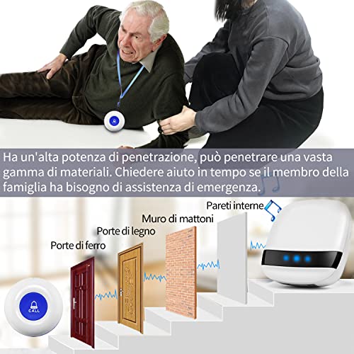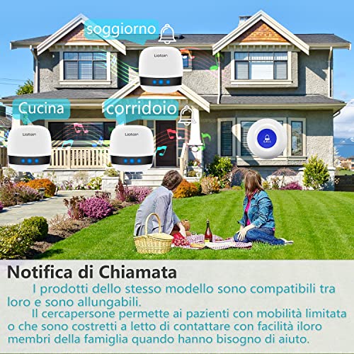 LIOTOIN Wireless Pulsante Chiamata Emergenza/Ricevitore Portatile/Allarme Sicurezza Cercapersone/Sistema Assistenza per Anziani (3 Trasmettitori 3 Ricevitori) ...