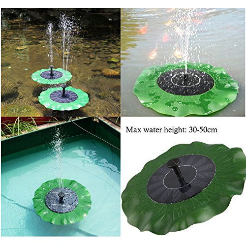 Liqoo Pannello Solare Energetico Pompa acqua decorativa fontana Foglia di Loto galleggiante Piscina Paesaggio Stagno del Giardino con 4 diversi ugelli 1.4W