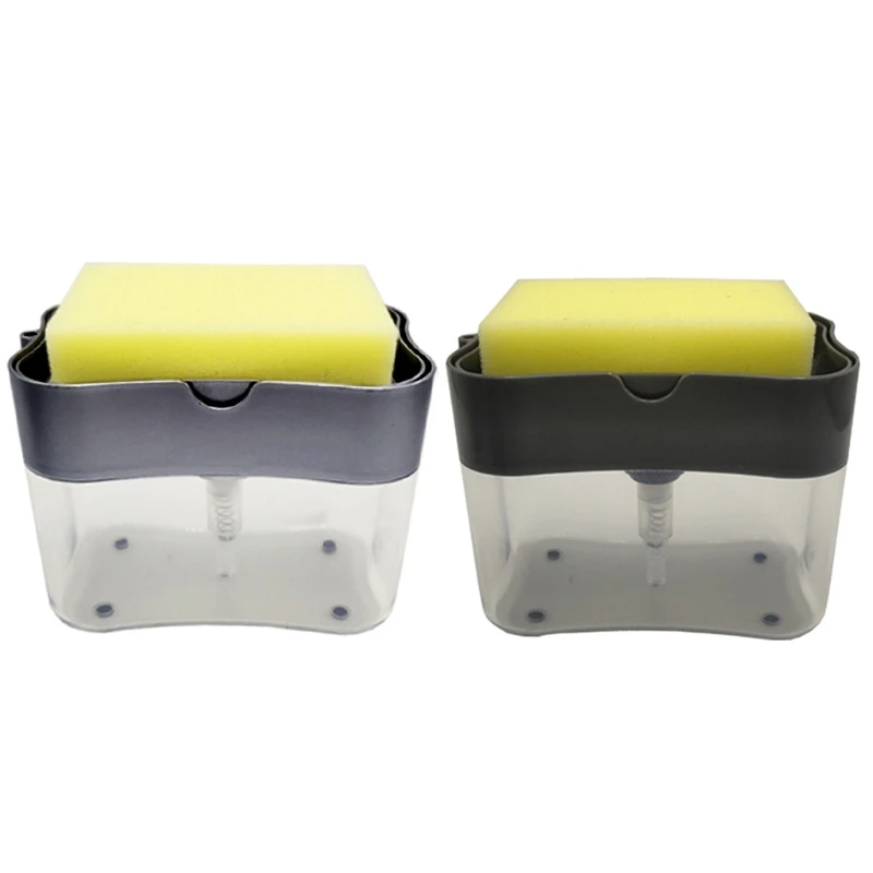 Liquid Soap Pump Dispenser with Sponge Holder Cleaning Container Manual Press Soap Organizer Kitchen Cleaner Tool Home