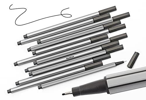 Liquidraw Set di 12 penne nere a punta fine da 0,4 mm, penne colorate nere per artisti, architetti, disegno tecnico, scrittura a mano, calligrafia, schizzi e illustrazioni