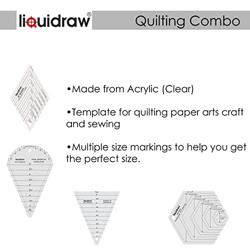 Liquidraw Set di 4 righelli per stencil in acrilico patchwork e ricami con motivo a forma di esagono, triangolo, petalo e diamante