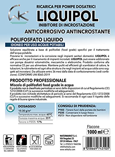 WK Liquipol | Polifosfato Liquido Anticalcare universale | 1 litro | Compatibile con tutte le pompette dosatrici | Made in Italy
