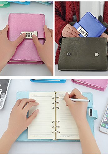 Lirener Riempibile PU Pelle Diario Taccuino Progettista Organizzatore con Serratura a Combinazione, Diario Travel Notebook Agenda con Password Portapenne, Slot per Schede, 185x135mm