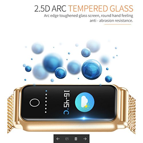 LIRONG Braccialetto Smart Motion, Monitoraggio Della Pressione Sanguigna Monitoraggio Della Pressione Sanguigna Schermo A Colori Metallizzato Passo Bluetooth Impermeabile Per ANDROID, MIUI, Ios,Gold