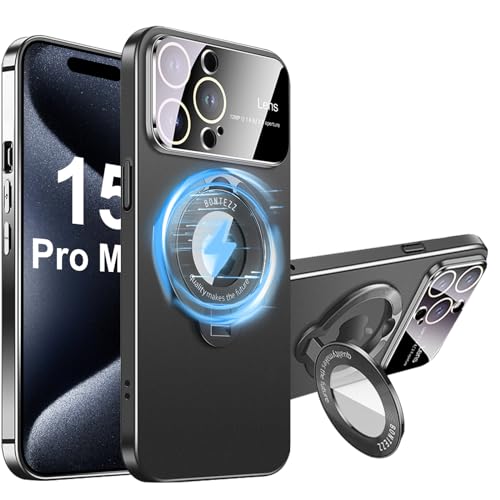 Lisade Phone Case for iPhone 15 Pro Max with Magnetic Stand, Large Window Phone Case Leak Label Magnetic Bracket for iPhone 15 Pro Max (Black)