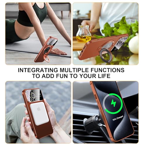 [2023 New Phone Case] - The large window phone case for iphone 15 promax with magnetic holder adopts a 2 in 1 design, the ring cover can be flipped over, and can be used as a mobile phone holder to watch TV, which is stylish and generous.
