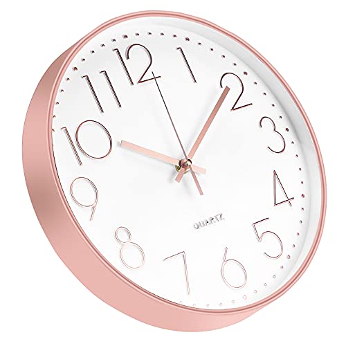 Lisedeer 30cm Modern Quartz Lautlos Wanduhr Schleichende Sekunde ohne Ticken Analoge Wanduhr (Rose Gold)