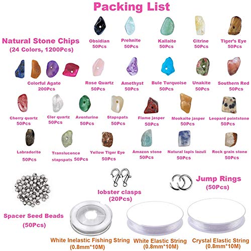 Liseng 1323PZ Kit Perline di Pietre Preziose Irregolari Perline Distanziali Catenacci per Aragosta Anelli di Salto Elastici per Gioielli DIY Forniture