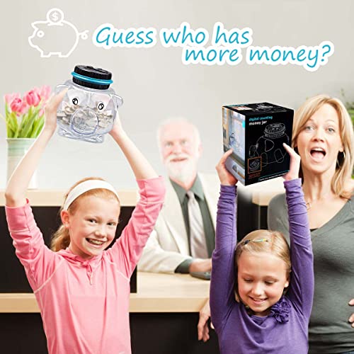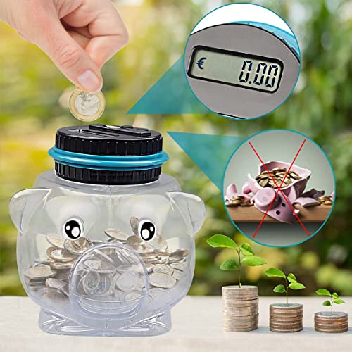 Lishang Salvadanaio Elettronico Digitale Contamonete con Display LCD Salvadanaio Conta Soldi Apribile Grande Trasparente Salvadanaio Automatico Contatore Monete Bambini Adulti Regali Natale Compleanno