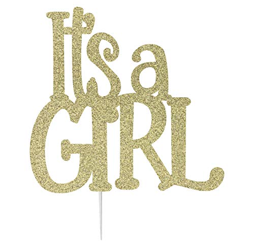 LissieLou It's a Girl Baby Shower Cake Topper Glitter Card Gold Made in UK