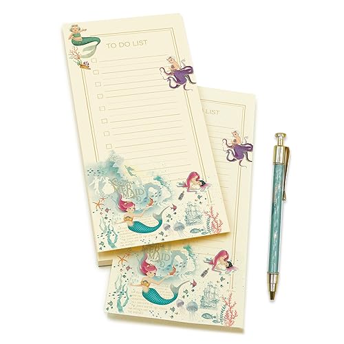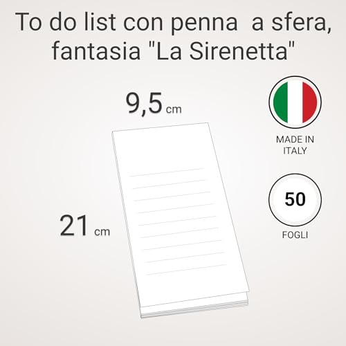 Set To Do List + Penna a Sfera, Taccuino 9,5 x 21 cm, Block Notes, Planner Settimanale, Agenda Giornaliera, 50 Fogli da 80 g. Fantasia: La Sirenetta