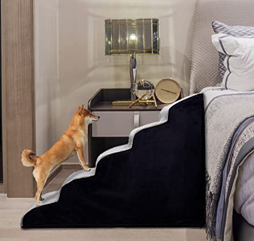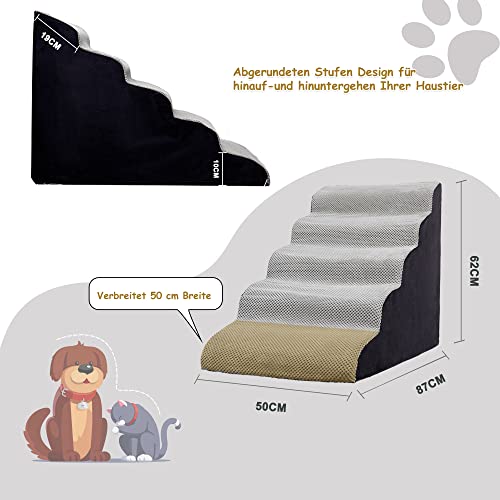 LitaiL Scala per cani di piccola taglia, altezza 60 cm, per letto a molle, extra large, 5 gradini, per cani di piccola taglia, con rivestimento rimovibile e rullo per pelucchi, colore: grigio