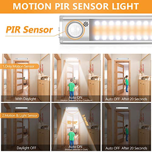 ▶Rilevamento Sensibile Intelligente: questa luce del sensore di movimento si accende automaticamente quando la distanza di rilevamento è di circa 3 M-8 M e l'angolo di rilevamento è entro 120 gradi. La luce sotto l'armadio si spegne automaticamente dopo 20 secondi di assenza di movimento.