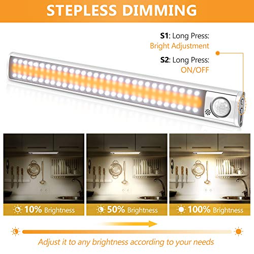 LITAKE Luci LED Per Armadio, 120LED Dimmerabile Luce Armadio con Sensore Movimento, USB Ricaricabile 4 Modalità Luce Armadio Led Guardaroba Per Cucina, Scale, Sottopensile, Corridoio