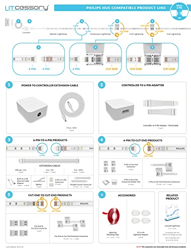 Litcessory Cavo di Prolunga per Philips Hue Lightstrip Plus (1m, 2 Pezzi, Bianco - MICRO 6-PIN V4)