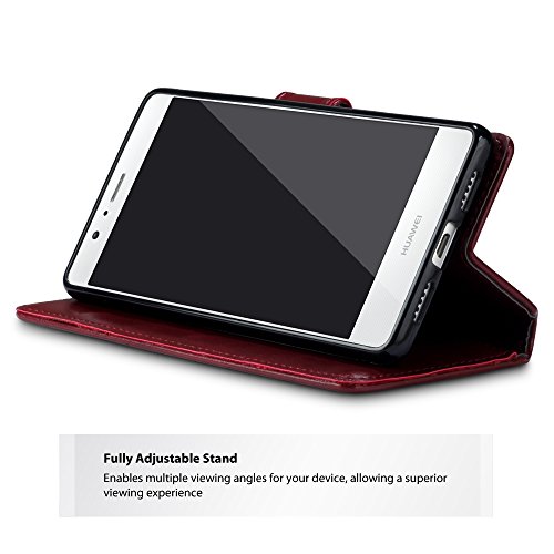 P9 Lite Cover, Terrapin Premium di cuoio del raccoglitore con Funzione di Appoggio per Huawei P9 Lite Custodia Pelle, Colore: Rosso, Bianco Cucitura