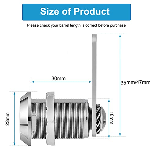 Litensh 30mm Serrature a camma in acciaio inossidabile,Sicurezza Mailbox Lock Cabinet Drawer Cam Lock,con chiavi gemelle per le porte gli armadi gli armadietti e le cassette della posta (1, 30 mm)