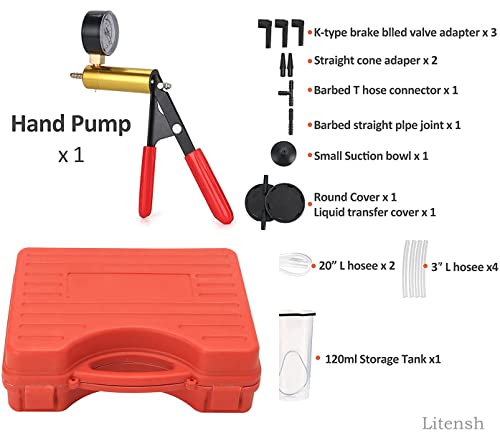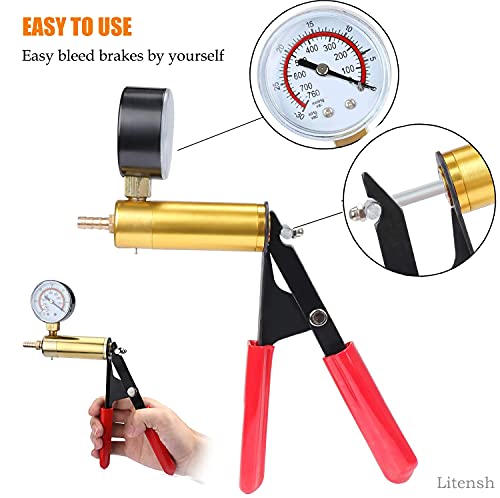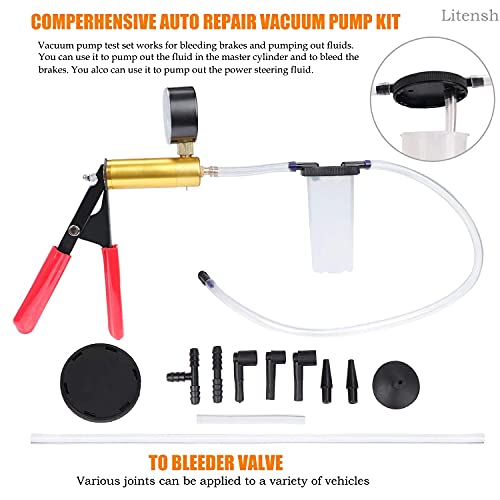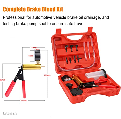 Litensh Kit di spurgo dei Freni con Adattatore per vacuometro, Strumenti per Lo spurgo del Liquido dei Freni, Tester per Pompa a Vuoto Portatile per Camion di Moto per autoveicoli