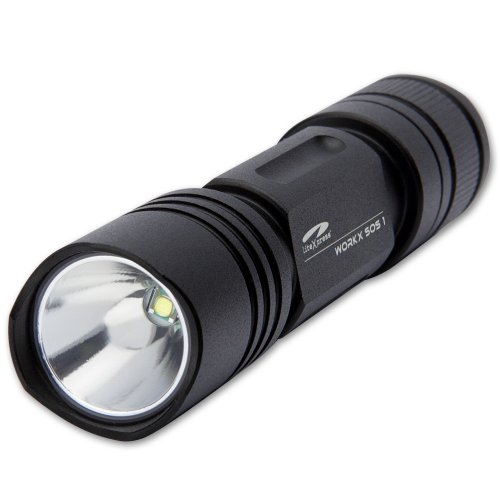 Litexpress WORKX SOS 1 - Torcia in alluminio con lampeggiante SOS, LED di alta qualità con fino a 220 Lumen, colore: Nero