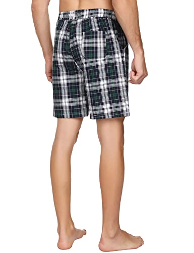 Litherday Pantaloncini Pigiama da Uomo Pantaloncini Estivi Uomo Cotone Pantaloncini Casual da Uomo Stile scozzese e Tinta Unita Pigiami da Uomo C-verde S
