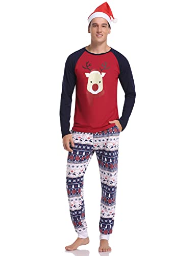 Litherday Pigiama Natalizio Cotone Pigiami Natalizi da Uomo Pigiama Natalizio da Donna Pigiami Famiglia Coordinati Natale Pigiama in Due Pezzi Regalo di Natale Invernale Uomo L