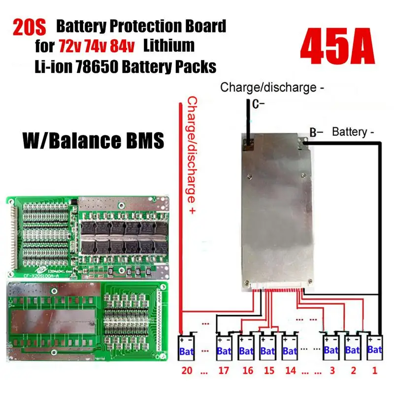 72V 20S 45A Lithium Li-Ion 18650 Battery Bms Pcb Board With Protection Balance Board Module For Electrical Motorbike E-Bike
