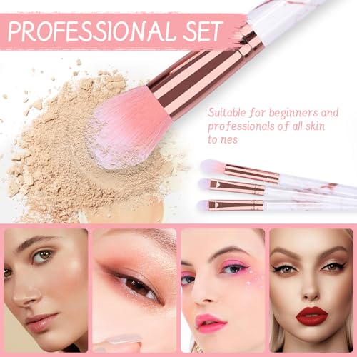 【Set Di Pennelli Per Trucco】Set pennelli contiene 10 pennelli per trucco in marmo rosa, 2 pennelli per trucco e 1 borsa per il trucco, incluso pennello per fondotinta, pennello per viso kabuki, pennello per cipria, pennello per eyeliner, pennello per sopracciglia, pennello per ombretto, pennello angolato, pennello per correttore, pennello per fard, contorno pennello, pennello sfumino, ecc,ed è inclusa anche una borsa per il trucco in stile rosa.