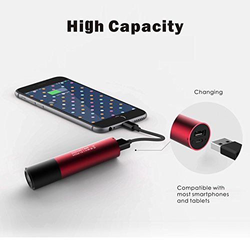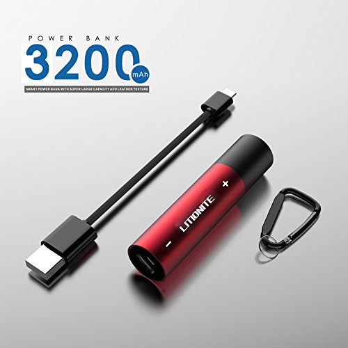 Litionite Blaze 3200mAh Mini Power Bank in Alluminio - 3 in 1 Caricabatterie USB/Torcia Led/Moschettone Portachiavi - Batteria Esterna d'emergenza Portatile Tascabile per Smartphone/Tablet (Red)