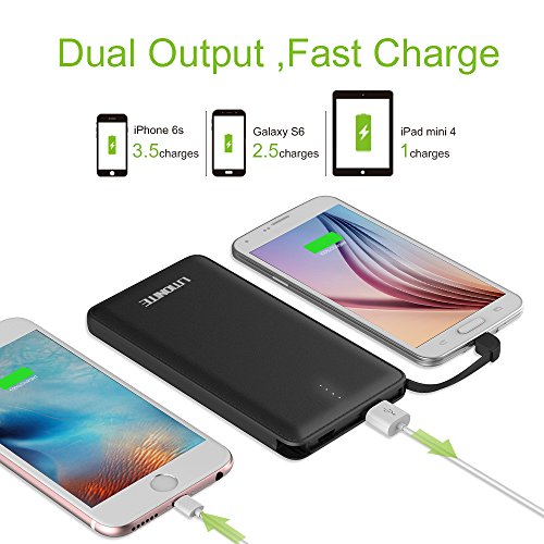 Litionite Tessius 10000mAh Power Bank Caricabatterie Batteria Esterna Portatile, integra un Cavo Micro USB per Smartphone + Adattatore iPhone (Black)
