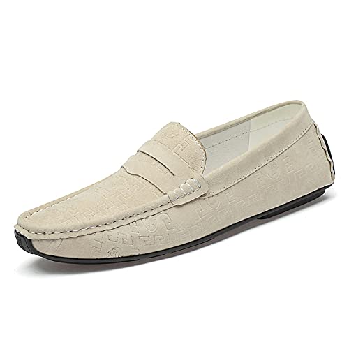 LITNERMIA Mocassini da uomo Penny in pelle scamosciata con motivo stampato, Beige (Color panna), 42 2/3 EU