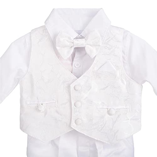 Lito Angels - Completo Abito Bianco da Battesimo per Bimbo, 5 Pezzi Set (Gilet, Camicia, Pantaloni, Papillon e Cappello), Taglia 3-6 Mesi, Manica Lunga, Floreale