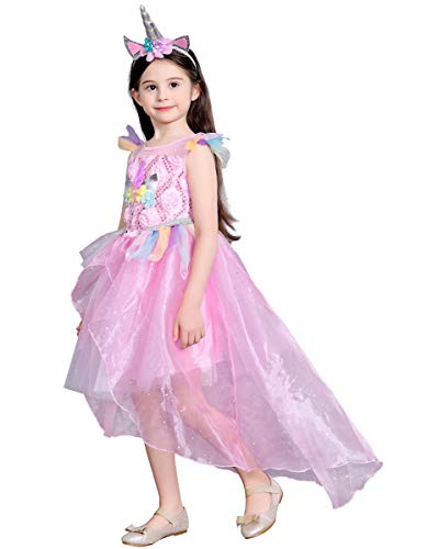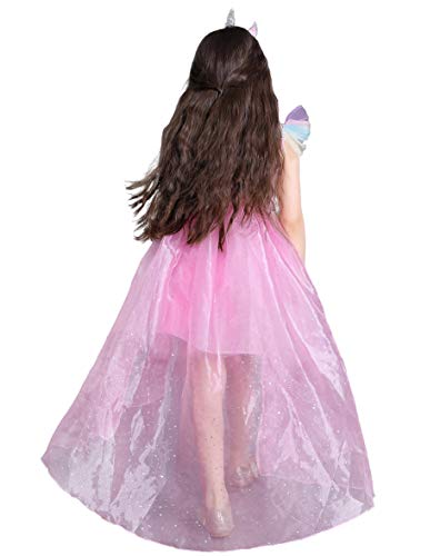 Lito Angels Ragazza Abito Stile Unicorno Costumes con Cerchio per Capelli Principessa Ariel Abito con Gonna di trascinamento Vestito da Festa di Halloween Taglia 6-7 Anni