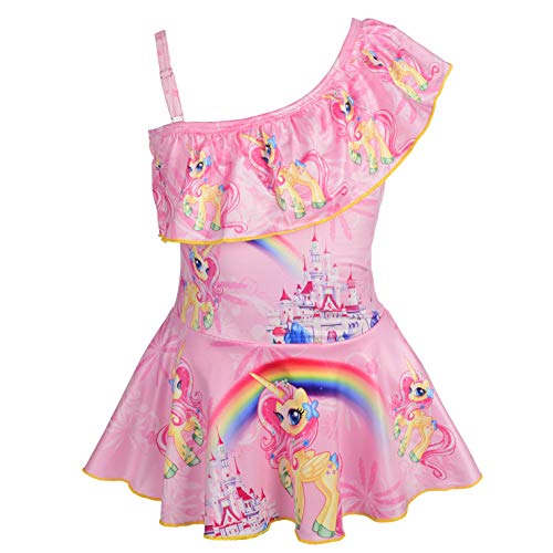 Lito Angels - Unicorno Costume da Bagno Intero per Bambine, Estate, Spiaggia, Piscina, Taglia 5-6 Anni, Rosa, Stile E