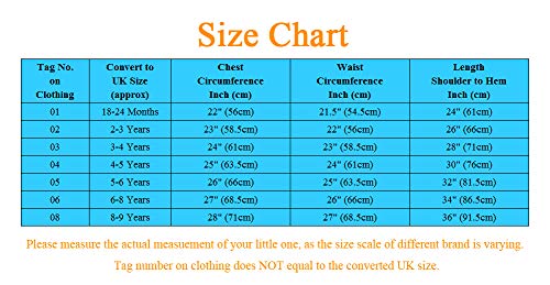 Questo adorabile vestito è fedele alla taglia. Per garantire una vestibilità perfetta, misurare le dimensioni effettive della tua bambina e confrontarle con la tabella delle taglie che abbiamo fornito nell'elenco.