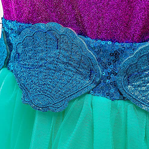 Lito Angels Vestito Costume da Sirena Principessa Ariel per Bambina, Taglia 7-8 Anni, Manica Corta, Rosso Verde