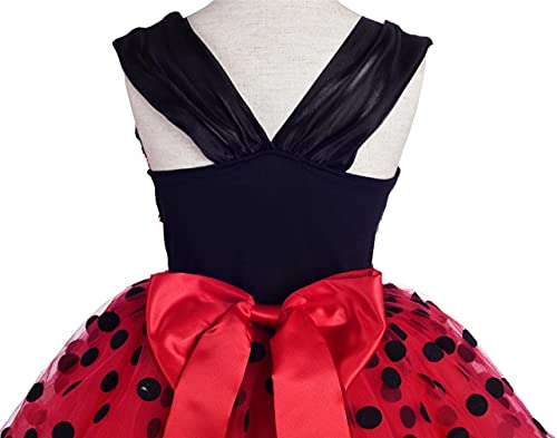 Lito Angels Vestito da Ladybug Coccinella per Bambina, Gonna Tutu in Tulle Rosso a Pois, Taglia 3-4 Anni