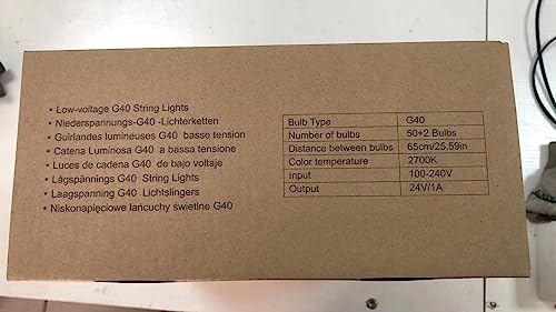 Litogo Catena Luminosa Esterno, 35.5M Luci da Esterno Giardino, 50+2 G40 LED Plastica Lampadine 2700K, Impermeabile Luci da Giardino Stringa Lampadina per Esterni Decorative Festa Matrimonio Gazebo