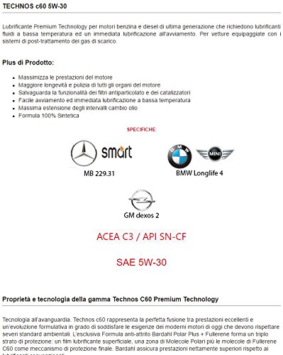 4 LITRI OLIO MOTORE AUTO BARDAHL TECHNOS C60 5W30 POLAR PLUS FULLERENE API SN-CF