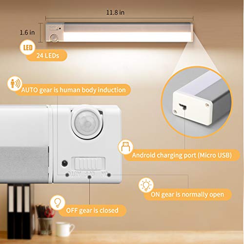 LITSPOT Luce a LED Magnetica Ricaricabile con USB,24 LEDs Sensore di Movimento,Automatica.Ideale per Armadi,Pensili,Dispense.Portatile,si attacca ovunque Confezione