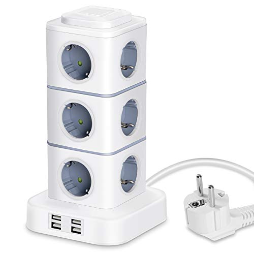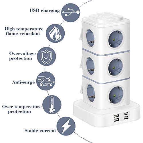LITSPOT Multipresa Verticale, Torretta Multipresa con 12 Prese (2500W / 10A) e 4USB, Ciabatta Multipresa da Scrivania Elettrica con Protezione da sovraccorrente per Smart Phone Tablet Laptop ect, 3M