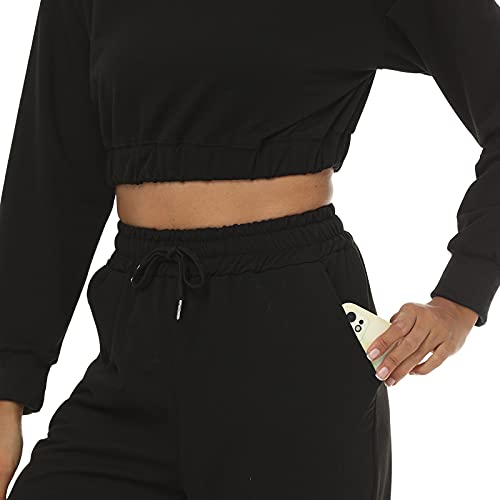 Litthing Tuta Sportiva da Donna Ginnastica Abbigliamento Casual Sportwear Due Pezzi Manica Lunga e Pantaloni Jogging a Elastico Vita per Training Fitness Yoga (Nero, l)