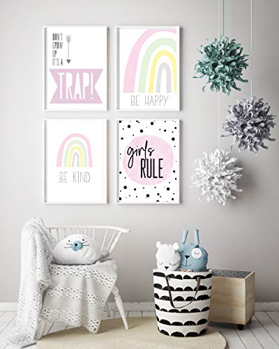 Little Angels Jamboree - Stampe per camera da letto per bambini, 4 pezzi, motivo: arcobaleno