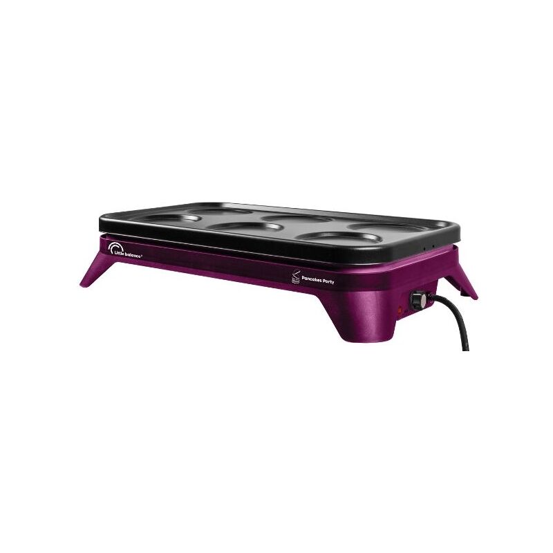 Potenza: 1500 W Per preparare 6 pancake, blinis o mini-crepes contemporaneamente! Vassoio a 6 cavità in fusione di alluminio con rivestimento antiaderente Cavità molto profonde per soffici frittelle Diametro cavità 6,5 cm Termostato regolabile Fornito con 6 spatole in legno Pratico: riporre le spatole sotto il dispositivo Piedini isolanti e antiscivolo